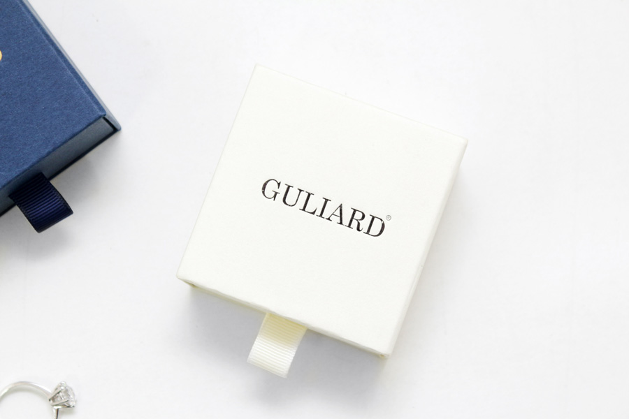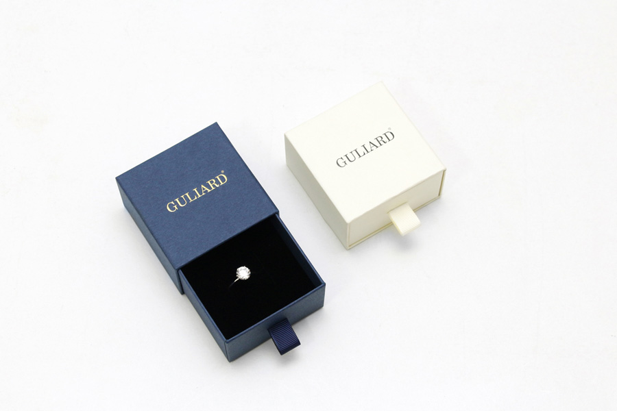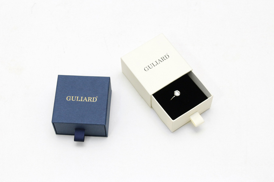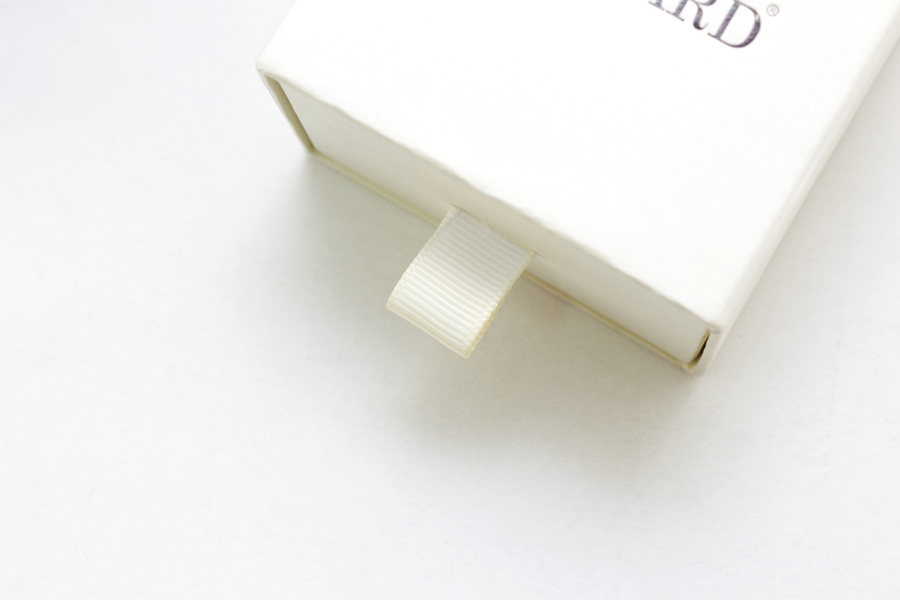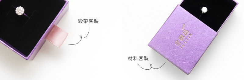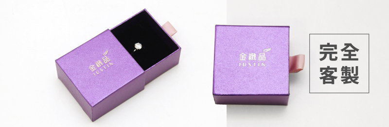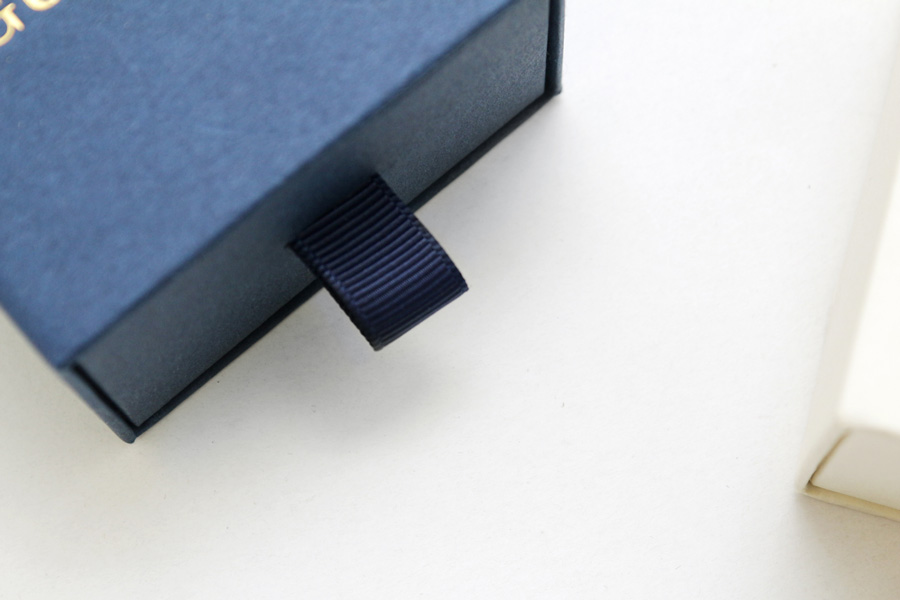 以抽拉的方式開合,前側附上質感滌綸緞帶,精緻工藝、緞帶穩固耐拉。盒內海綿切溝多樣化,可一次收納多種產品例如:戒指、項鍊、耳環等。