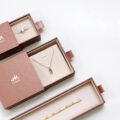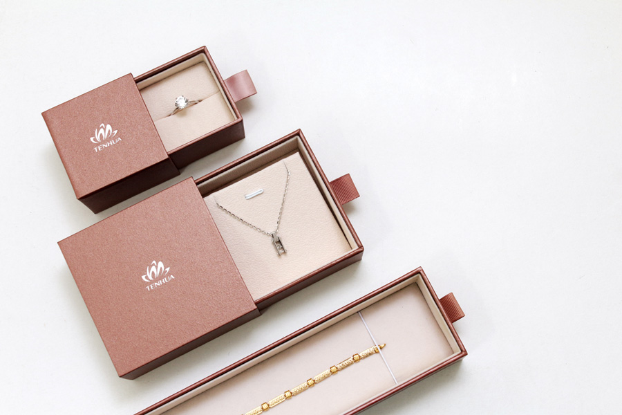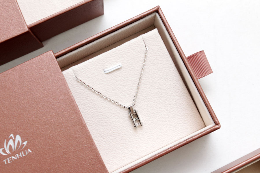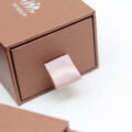 抽拉款式的飾品紙盒,搭配穩固耐用的質感緞帶,耐用又好看。吊墜盒盒內為芯子內裡,可將芯子立起,讓這款盒子不只是包裝盒,更兼具展示作用。