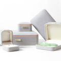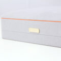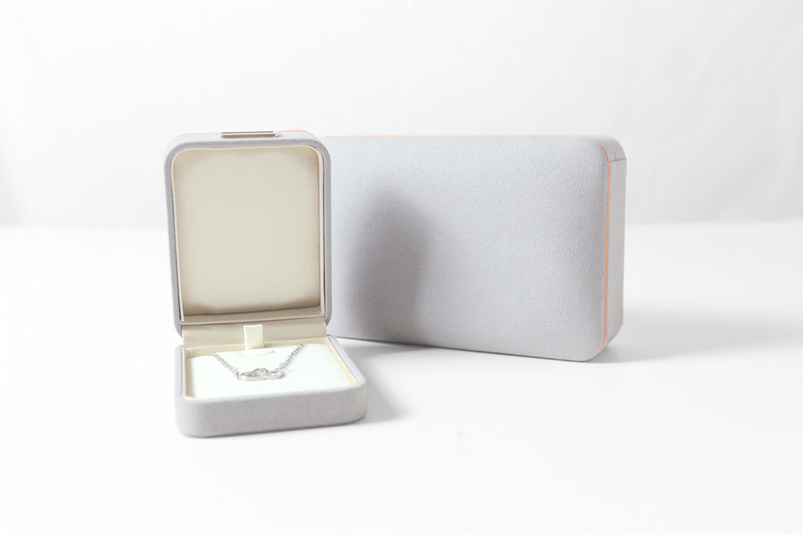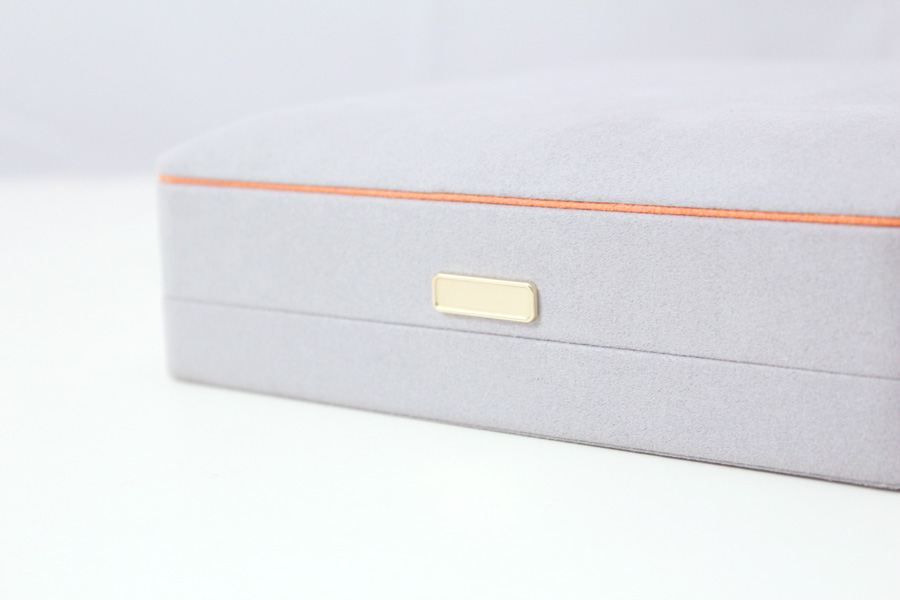這款珠寶盒使用珠寶品牌愛用的超纖材料,耐磨、手感柔順且輕巧,易清潔,質感媲美天然皮革。盒子前側小巧精美的金屬牌,可雷射品牌專屬LOGO。