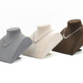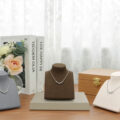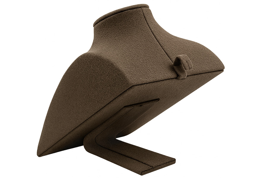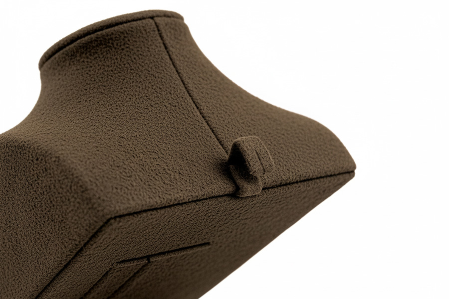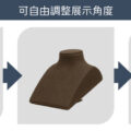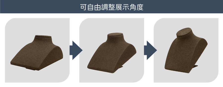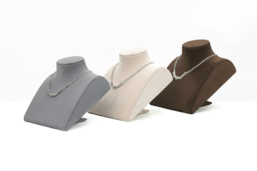 平式的展示人台,可自由調整展示角度,滿足不同的陳列需求。材質為珠寶等級麂皮絨,手感與視覺上都能感受到的好品質,更能襯托出珠寶的美好光澤。