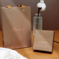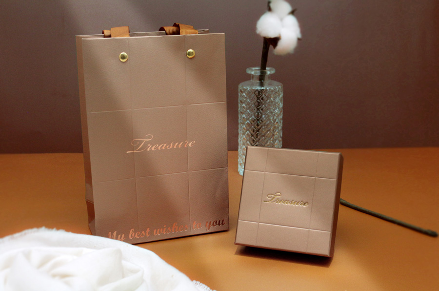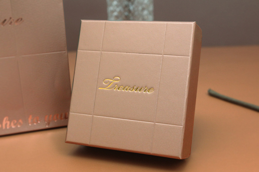 選用帶有金屬光澤的紙張,表面覆膜讓手感與視覺上更加精緻。搭配上俐落的壓印線條,整體風格非常時尚,是非常有個性的一款包裝盒。盒面LOGO可客製化印製品牌LOGO。