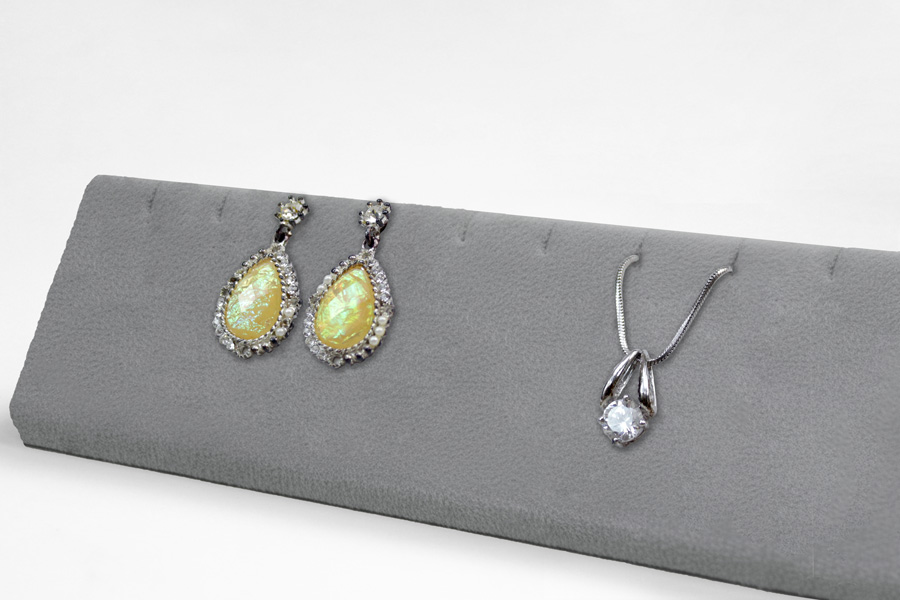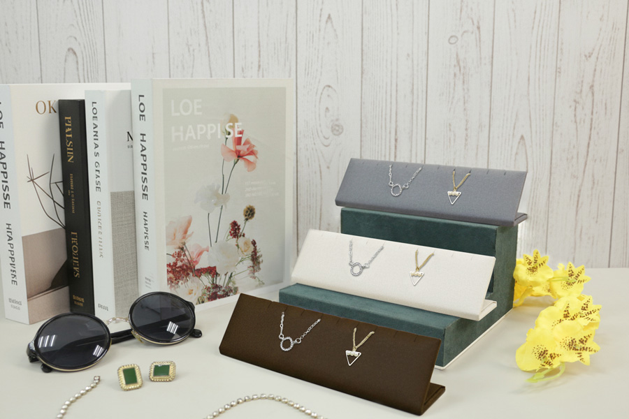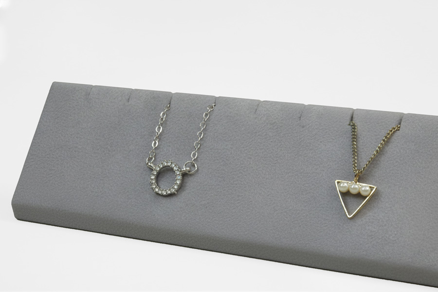 斜面設計的項墜台,以完美的角度展示您的商品。長條設計可同時放置5條項墜或5對耳飾(也可依據須放置數量調整尺寸)。
