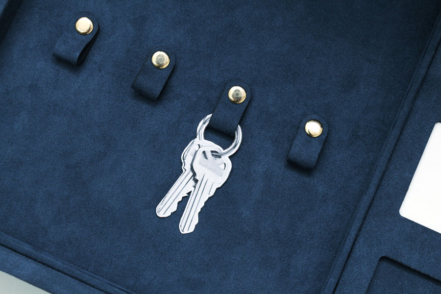 - 鑰匙釦設計:多組金屬釦環固定鑰匙,實用且不易脫落。
